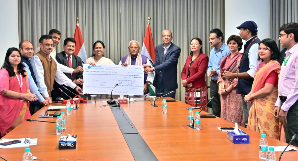 National Small Industries Corporation : The National Small Industries Corporation Limited (NSIC), a Mini Ratna enterprise under the Ministry of MSME, paid a dividend of ₹43.89 crore to the Government of India for the financial year 2024-25. The dividend cheque was presented by Dr. Subhransu Sekhar Acharya, CMD, NSIC to Shri Jitan Ram Manjhi, Union Minister of MSME and Sushri Shobha Karandlaje, Minister of State, Ministry of MSME in the presence of Shri S.C.L. Das, Secretary, Ministry of MSME and other senior officials from the Ministry & NSIC.