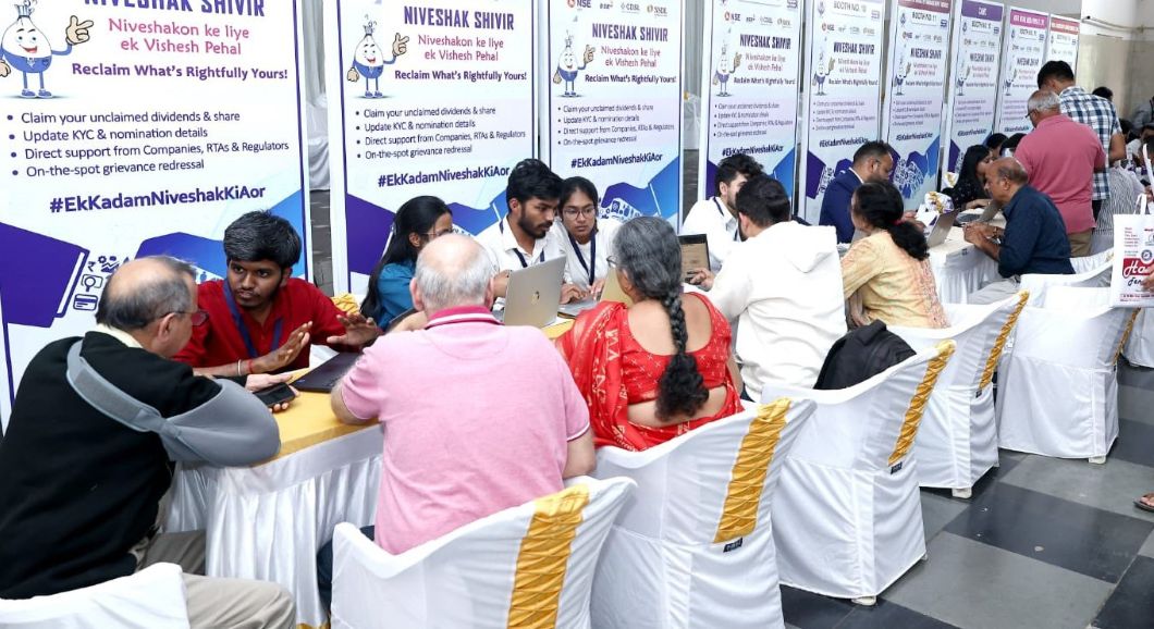 The Niveshak Shivir enabled direct facilitation of unclaimed dividends and shares pending for over six to seven years, provided on-the-spot KYC and nomination updates, and addressed pending IEPFA claim issues. Dedicated kiosks were set up by stakeholder companies and RTAs, enabling investors to interact directly with officials and eliminate intermediaries from the process.