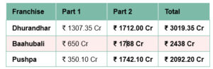 It not only became the biggest Hindi net grosser, but also went on to become the first film ever to top 1000 crores net in a single language at the Indian box office. The duology’s exceptional performance in both domestic and international markets has been instrumental in pushing the franchise past the historic 3000 crore milestone.