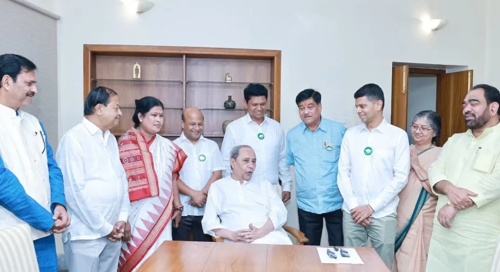ଏହି ଫଟୋରେ ମୁଖ୍ୟମନ୍ତ୍ରୀ ନବୀନ ପଟ୍ଟନାୟକ ଏକ ଚଉକିରେ ବସିଛନ୍ତି। ତାଙ୍କ ପଛରେ ଦଳର ସାଂସଠନିକ ସଂପାଦକ ପ୍ରଣବ ପ୍ରକାଶ ଦାସ, ରଣେନ୍ଦ୍ର ପ୍ରତାପ ସ୍ବାଇଁ, ପ୍ରଣବ ବଳବନ୍ତରାୟ, ଦେବୀ ମିଶ୍ର, ସ୍ନେହାଙ୍ଗିନ ଛୁରିଆ, ସମୀର ରଂଜନ ଦାସ ଏବଂ ମନ୍ତ୍ରୀ ବିକ୍ରମ କେଶରୀ ଆରୁଖ ଏବଂ ଉଷା ଦେବୀ ଉପସ୍ଥିତ ଥିଲେ। ସମସ୍ତେ ଦଳୀୟ ଷ୍ଟିକର ମାରି ସେଠାରେ ଉପସ୍ଥିତ ଥିଲେ।