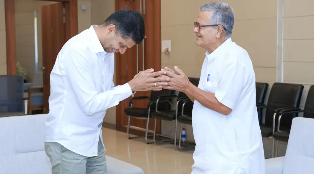 ଭୁବନେଶ୍ବର: ଉତ୍କଳମଣି ପଣ୍ଡିତ ଗୋପବନ୍ଧୁଙ୍କ ନାତି ଶ୍ରୀ ଧୀରେନ୍ଦ୍ର ଦାସ ନବୀନ ନିବାସ ଠାରେ 5T ଅଧ୍ୟକ୍ଷ ତଥା ନବୀନ ଓଡିଶାର ଅଧ୍ୟକ୍ଷ ଶ୍ରୀ ଭି.କେ. ପାଣ୍ଡିଆନଙ୍କୁ ଭେଟି ତାଙ୍କ ନୂତନ ଦାୟିତ୍ବ ପାଇଁ ଶୁଭେଚ୍ଛା ଜଣାଇଥିଲେ।