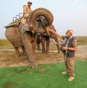 ପ୍ରଧାନମନ୍ତ୍ରୀ ମୋଦୀ ପ୍ରଥମେ ପାର୍କର ସେଣ୍ଟ୍ରାଲ କୋହୋରା ରେଞ୍ଜର ମିହିମୁଖ ଅଞ୍ଚଳରେ ହାତୀରେ ବସି ଭ୍ରମଣ କରିଥିଲେ। ପରେ ପରେ ସେ ସେହି ପରିସର ମଧ୍ୟରେ ଜିପ୍ ସଫାରି ନେଇଥିଲେ। ଏଥିସହିତ ମୋଦି ହାତୀମାନଙ୍କୁ ଆଖୁ ଖାଇବାକୁ ଦେଇଥିଲେ।