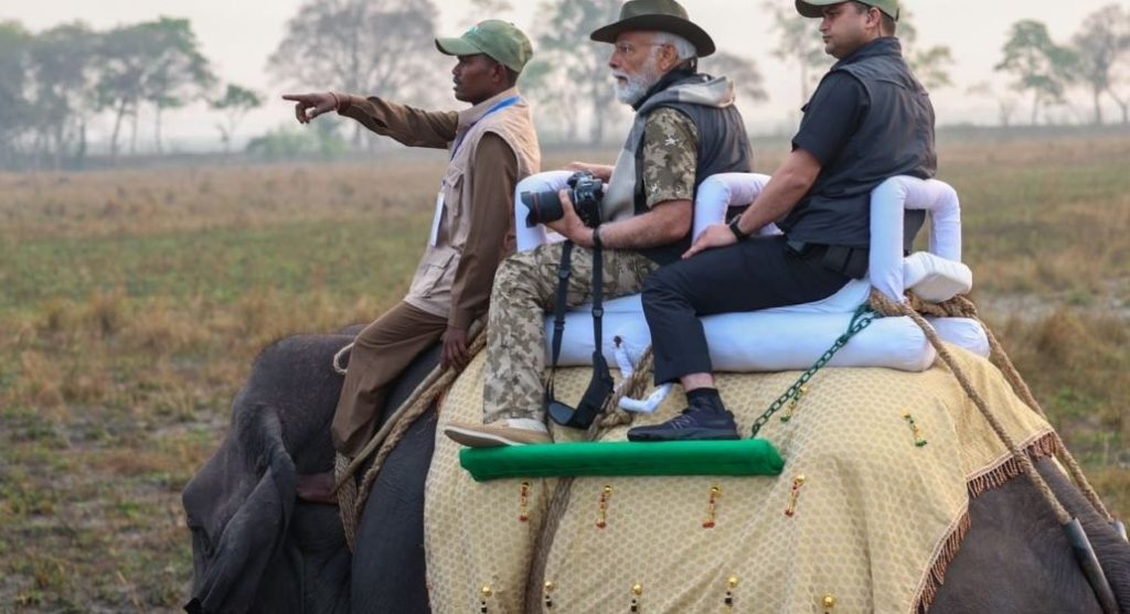 ନୂଆଦିଲ୍ଲୀ: ଆଜି ସକାଳେ ଆସାମର କାଜିରଙ୍ଗା ଜାତୀୟ ଉଦ୍ୟାନ ଏବଂ ଟାଇଗର ରିଜର୍ଭରେ ପ୍ରଧାନମନ୍ତ୍ରୀ ନରେନ୍ଦ୍ର ମୋଦୀ ହାତୀ ଏବଂ ଜିପ୍ ରେ ବସି ବୁଲିଥିଲେ। ୟୁନେସ୍କୋ ବିଶ୍ୱ ଐତିହ୍ୟ ସ୍ଥଳ ପରିଦର୍ଶନ କରିଥିଲେ।