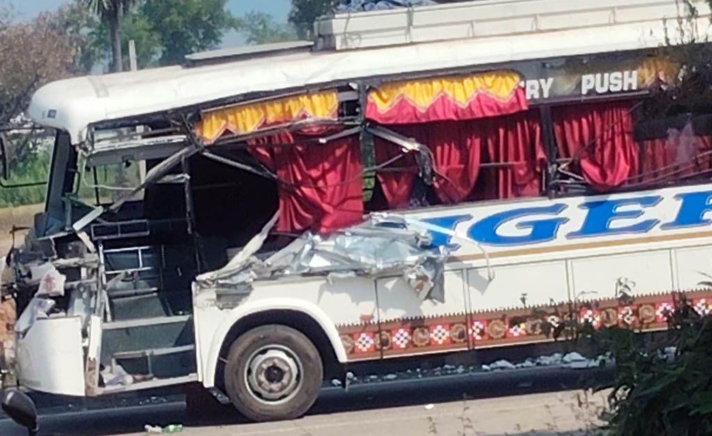 ଟ୍ରଲରକୁ ଧକ୍କା ଦେଲା ଘରୋଇ ବସ୍‌, ଜଣେ ମୃତ ୧୦ ରୁ ଅଧିକ ଆହତ