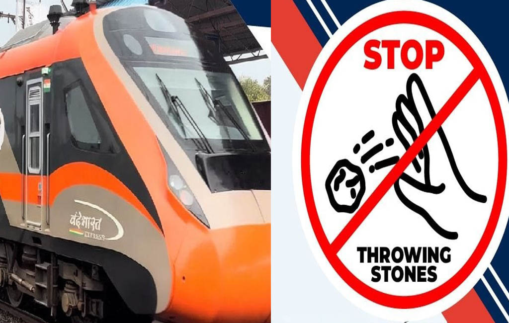 eastcoastrailway stone throwing on train vande bharat ପଥର ଫିଙ୍ଗିବା ପୂର୍ବତଟ ରେଳପଥ ବନ୍ଦେ ଭାରତ