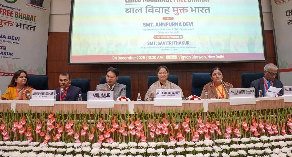 ନୂଆଦିଲ୍ଲୀ: ମହିଳା ଏବଂ ଶିଶୁ ବିକାଶ ମନ୍ତ୍ରଣାଳୟ ଆଜି (4 ଡିସେମ୍ବର 2025) ନୂଆଦିଲ୍ଲୀର ବିଜ୍ଞାନ ଭବନରେ ବାଲ୍ୟ ବିବାହ ମୁକ୍ତ ଭାରତ ଗଠନ ପାଇଁ 100 ଦିନିଆ ସଘନ ସଚେତନତା ଅଭିଯାନ ଆରମ୍ଭ କରିଛି। ବାଲ୍ୟ ବିବାହ ମୁକ୍ତ ଭାରତ ଅଭିଯାନର ପ୍ରଥମ ବାର୍ଷିକୀ ଅବସରରେ ଏହି ଅଭିଯାନ ଆରମ୍ଭ କରାଯାଇଛି । କେନ୍ଦ୍ର ମହିଳା ଏବଂ ଶିଶୁ ବିକାଶ ମନ୍ତ୍ରୀ ଅନ୍ନପୂର୍ଣ୍ଣା ଦେବୀ ଏହି କାର୍ଯ୍ୟକ୍ରମର ଶୁଭାରମ୍ଭ କରିଥିଲେ। ଏହି ଅବସରରେ ମହିଳା ଏବଂ ଶିଶୁ ବିକାଶ ମନ୍ତ୍ରଣାଳୟର ରାଷ୍ଟ୍ରମନ୍ତ୍ରୀ ସାବିତ୍ରୀ ଠାକୁର ଉପସ୍ଥିତ ଥିଲେ।