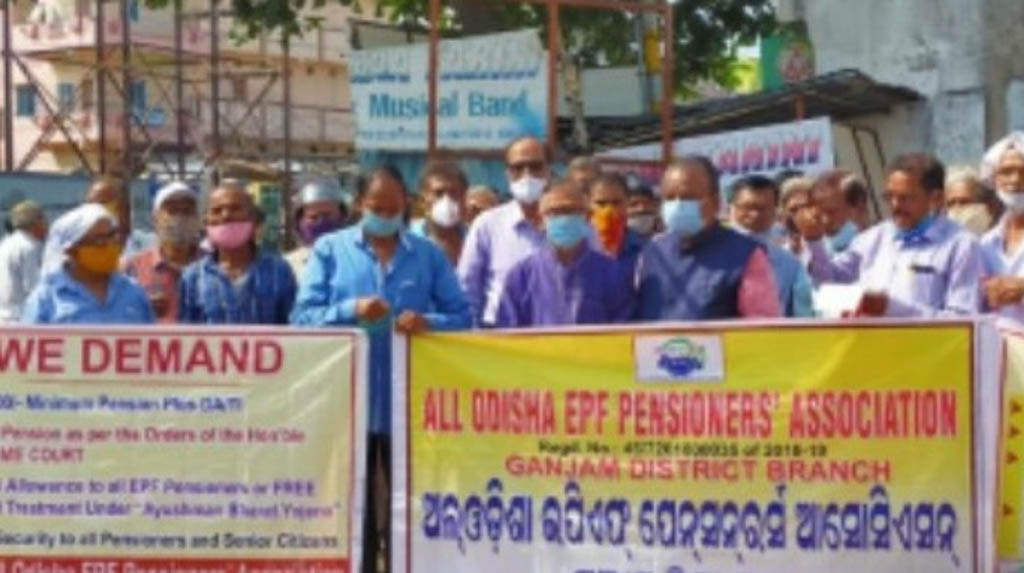 ବ୍ରହ୍ମପୁର: ସର୍ବନିମ୍ନ ମାସିକ ପେନ୍‌ସନ ୯ହଜାର ଟଙ୍କା ସହ ମହଙ୍ଗା ଭତ୍ତା, ସୁପ୍ରିମ କୋର୍ଟର ନିର୍ଦ୍ଦେଶ ଆଧାରରେ ବର୍ଦ୍ଧିନ ପେନସନ ପ୍ରଦାନ, ସମସ୍ତ ଇପିଏଫ୍ ପେନସନ ଭୋଗୀ ବରିଷ୍ଠ ନାଗରିକଙ୍କୁ ଆୟୁଷ୍କାନ ଭାରତ ଯୋଜନାରେ ସାମିଲ କରି ମାଗଣା ଚିକିତ୍ସା କରିବା ଆଦି ବିଭିନ୍ନ ଦାବି ନେଇ ପୂର୍ବରୁ ଆହ୍ୱାନ କ୍ରମେ ଆଜି ଅଲ୍ ଓଡ଼ିଶା ଇ.ପି.ଏଫ୍‌. ପେନସନରର୍ସ ଏସୋସିଏସନ୍ ତରଫରୁ ଦାବି ଦିବସ ପାଳିତ ହୋଇଛି। ଏହି ଦାବିପ୍ରଦାନ ପାଇଁ ପୂର୍ବରୁ ରାଜ୍ୟରେ ଥିବା ୧.୬୨ ଲକ୍ଷ ଇପିଏଫ୍ ପେନସନ ଭୋଗୀମାନେ ଏକତ୍ରିତ ହୋଇ ଅଲ୍ ଓଡ଼ିଶା ଇପିଏଫ୍ ପେନସନରର୍ସ ଏସୋସିଏସନ୍ ଗଠନ କରିଥିଲେ।