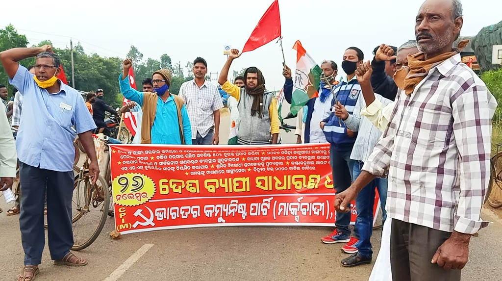 ଚିଲିକା : ବିଭିନ୍ନ ଦାବି ନେଇ ଆଜି ବିଭିନ୍ନ ଶ୍ରମିକ ସଂଗଠନ ପକ୍ଷରୁ ଭାରତ ବନ୍ଦର ଡାକରା ଦେଇଥିବା ବେଳେ ଏହାର ପ୍ରଭାବ କୁହୁଡ଼ିରେ ଦେଖିବାକୁ ପଡୁଛି। ଆଜି ଜିଲ୍ଲାରେ କାର୍ଯ୍ଯରତ ବିଭିନ୍ନ ସଂଗଠନ କେନ୍ଦ୍ର ସରକାରଙ୍କ ମାରଣ ନୀତିକୁ ବିରୋଧ କରି ରାସ୍ତାକୁ ଓଲ୍ଲାଇଛନ୍ତି। ସର୍ବ ଭାରତୀୟ ବନ୍ଦର ପ୍ରଭାଵ ଦେଖିବାକୁ ମିଳିଛି କୁହୁଡିରେ। ମାର୍କସବାଦୀ କମ୍ମୁନିଷ୍ଟ ପାର୍ଟୀ ଟାଙ୍ଗୀ ବ୍ଲକ କୁହୁଡି ଶାଖା ପକ୍ଷରୁ କୁହୁଡି ନିକଟରେ ୧୬ ନଂ ଜାତୀୟ ରାଜପଥ ଅବରୋଧ କରାଯାଇଛି।