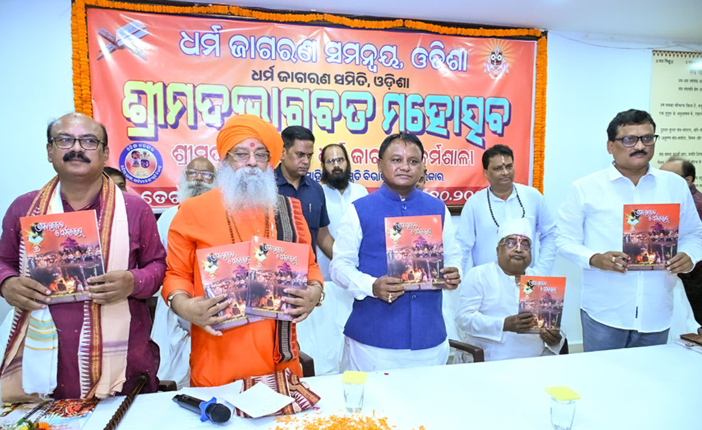 ଭୁବନେଶ୍ୱର: ଧର୍ମ ଜାଗରଣ ସମିତି, ଓଡ଼ିଶା ପକ୍ଷରୁ ଆଜି ଭୁବନେଶ୍ବରର କଟକ ରୋଡ ସ୍ଥିତ ତେରାପନ୍ଥ ଭବନ ଠାରେ ଆୟୋଜିତ ଶ୍ରୀମଦ୍ ଭାଗବତ ମହୋତ୍ସବରେ ମୁଖ୍ୟମନ୍ତ୍ରୀ ମୋହନ ଚରଣ ମାଝୀ ଯୋଗ ଦେଇ ପ୍ରତ୍ୟେକ ଓଡ଼ିଆ ଘରେ ଭାଗବତ ଏବଂ ପ୍ରତ୍ୟେକ ଗାଁର ଭାଗବତ ଟୁଙ୍ଗି ମାନଙ୍କର ପୁନରୁଦ୍ଧାର ଓ ପ୍ରତିଷ୍ଠା କରିବା ପାଇଁ ରାଜ୍ୟ ସରକାର ପ୍ରତିଶ୍ରୁତିବଦ୍ଧ ବୋଲି କହିଥିଲେ। ମୁଖ୍ୟମନ୍ତ୍ରୀ ଏହା ମଧ୍ୟ କହିଥିଲେ ଯେ ଯୁବବର୍ଗ ଆଜିର ସମାଜର ସମସ୍ତ ବିକାଶରେ ମୁଖ୍ୟ ଭୂମିକା ନିଭାଇଥାନ୍ତି ଏଣୁ ସେମାନଙ୍କୁ ଏହି ମାର୍ଗରେ ନେବା ପାଇଁ ଭାଗବତ ପାଠ ଏକ ବଳିଷ୍ଠ ମାଧ୍ୟମ।