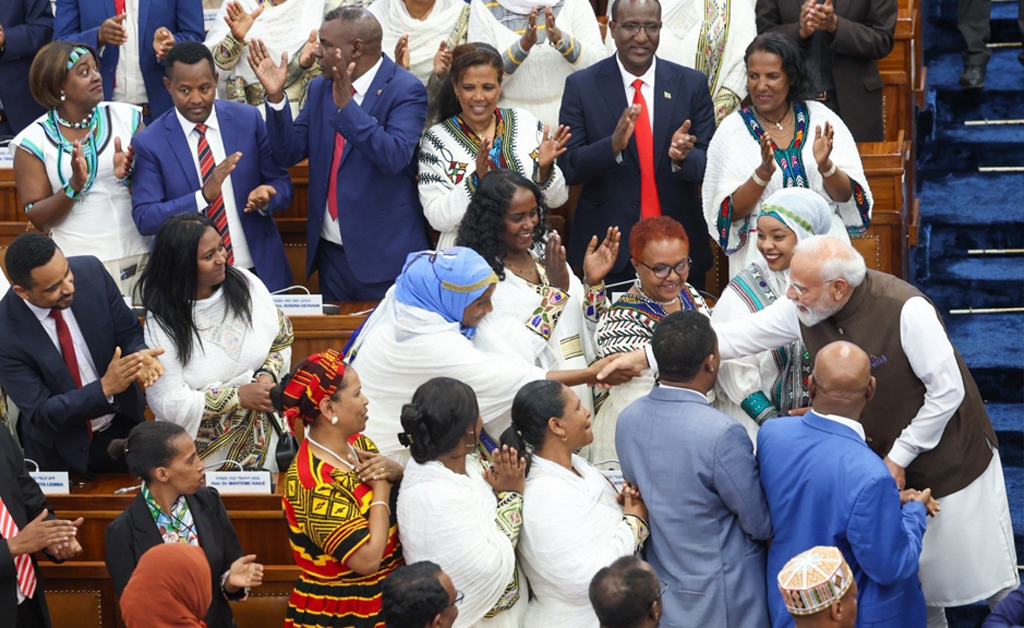 ପ୍ରଧାନମନ୍ତ୍ରୀ ଭାରତୀୟମାନଙ୍କ ପକ୍ଷରୁ ଇଥିଓପିଆ ସାଂସଦମାନଙ୍କୁ ବନ୍ଧୁତା ଏବଂ ସଦ୍ଭାବନାର ଶୁଭେଚ୍ଛା ଜଣାଇ ତାଙ୍କର ଅଭିଭାଷଣ ଆରମ୍ଭ କରିଥିଲେ। ସେ କହିଥିଲେ ଯେ, ସଂସଦକୁ ସମ୍ବୋଧିତ କରିବା ଏବଂ ଗଣତନ୍ତ୍ରର ଏହି ମନ୍ଦିର ମାଧ୍ୟମରେ, ଇଥିଓପିଆର ଭବିଷ୍ୟତ ଗଠନ କରୁଥିବା ସାଧାରଣ ଜନତା – କୃଷକ, ଉଦ୍ୟୋଗୀ, ଗର୍ବିତ ମହିଳା ଏବଂ ଯୁବକମାନଙ୍କ ସହ କଥା ହେବା ଏକ ସୌଭାଗ୍ୟର ବିଷୟ। ତାଙ୍କୁ ସର୍ବୋଚ୍ଚ ପୁରସ୍କାର – ‘ଗ୍ରେଟ୍ ଅନର ନିଶାନ ଅଫ ଇଥିଓପିଆ’ ପ୍ରଦାନ କରିବା ପାଇଁ ସେ ଇଥିଓପିଆର ଜନତା ଏବଂ ସରକାରଙ୍କୁ ଧନ୍ୟବାଦ ଜଣାଇଥିଲେ। ଦୁଇଦେଶର ଗୁରୁତ୍ବପୂର୍ଣ୍ଣ ସମ୍ପର୍କ କଥା ଉଲ୍ଲେଖ କରି ପ୍ରଧାନମନ୍ତ୍ରୀ ସନ୍ତୋଷ ପ୍ରକାଶ କରିଥିଲେ ଯେ, ଏହି ଗସ୍ତ ସମୟରେ ଦୁଇ ଦେଶ ମଧ୍ୟରେ ରହିଆସିଥିବା ଦୀର୍ଘକାଳୀନ ସମ୍ପର୍କ ରଣନୈତିକ ସହଭାଗୀତା ସ୍ତରକୁ ଉନ୍ନୀତ ହୋଇଛି।