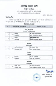 ଦିଲ୍ଲୀରୁ ପ୍ରକାଶିତ ହୋଇଥିବା ଏହି ଘୋଷଣାନାମାରେ ଉଲ୍ଲେଖ କରାଯାଇଛି ଯେ, ବିଭିନ୍ନ ରାଜ୍ୟରେ ହେବାକୁ ଥିବା ଉପନିର୍ବାଚନ ପାଇଁ ପ୍ରାର୍ଥୀ ଘୋଷଣା କରାଗଲା। ବିଜେପି ସଂସଦୀୟ କମିଟର ନିଷ୍ପତି ଅନୁସାରେ ଏହି ଘୋଷଣା କରାଯାଇଛି। ସେହି ଅନୁସାରେ ଓଡିଶାରେ ହେବାକୁ ଥିବା ଗୋଟିଏ ଆସନ ପାଇଁ ଏହି ଘୋଷଣା କରାଯାଇଛି।