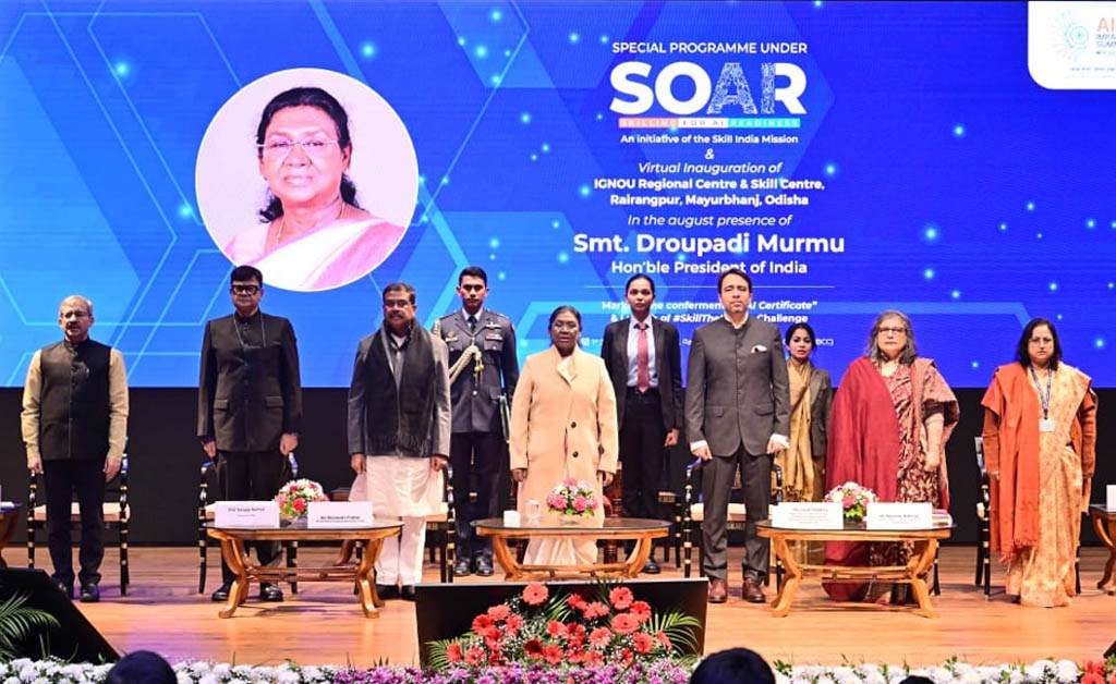 ରାଷ୍ଟ୍ରପତି ଦ୍ରୌପଦୀ ମୁର୍ମୁ ଆଜି (୧ ଜାନୁଆରୀ, ୨୦୨୬) ରାଷ୍ଟ୍ରପତି ଭବନ ସାଂସ୍କୃତିକ କେନ୍ଦ୍ରଠାରେ ଆୟୋଜିତ ଏକ କାର୍ଯ୍ୟକ୍ରମରେ ସ୍କିଲ୍ ଦ ନେସନ୍ ଚ୍ୟାଲେଞ୍ଜର ଶୁଭାରମ୍ଭ କରିଛନ୍ତି। ଏହି ଅବସରରେ ସେ ଓଡ଼ିଶାର ରାଇରଙ୍ଗପୁରରେ ଇଗ୍ନୋ ଆଞ୍ଚଳିକ କେନ୍ଦ୍ର ଏବଂ ଦକ୍ଷତା କେନ୍ଦ୍ରକୁ ଆଭାସୀ ମାଧ୍ୟମରେ ମଧ୍ୟ ଉଦଘାଟନ କରିଥିଲେ।