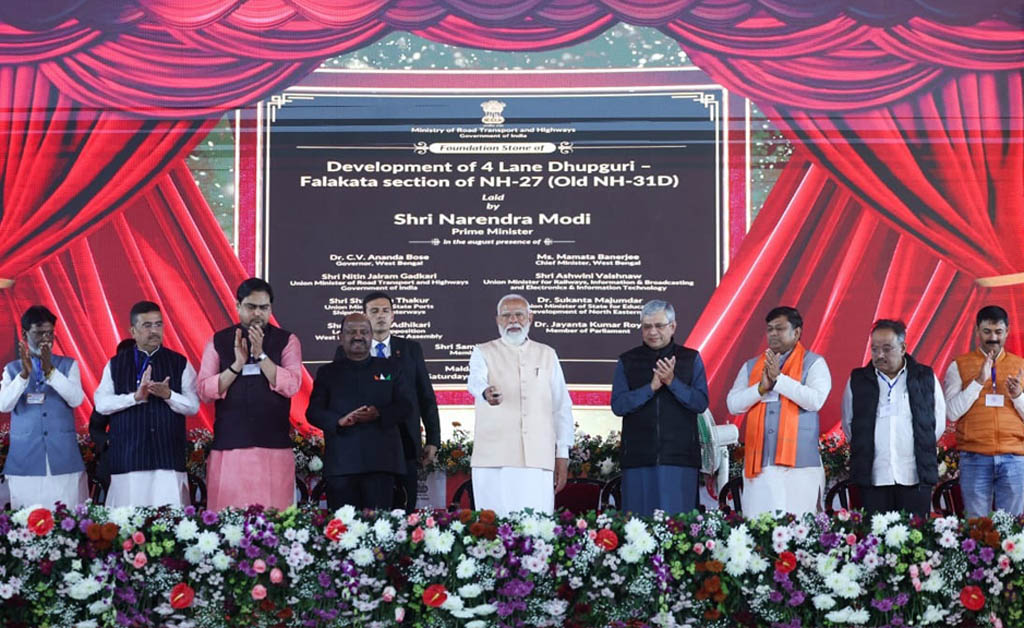 ପ୍ରଧାନମନ୍ତ୍ରୀ ଜାତୀୟ ରାଜପଥ ୩୧ଡି ର ଧୂପଗୁଡ଼ି-ଫଲକଟା ସେକ୍ସନର ପୁନଃନିର୍ମାଣ ଏବଂ ଚାରି-ଲେନ ବିଶିଷ୍ଟ କରିବା ପ୍ରକଳ୍ପର ଭିତ୍ତିପ୍ରସ୍ତର ସ୍ଥାପନ କରିଥିଲେ। ଏହା ଏକ ଗୁରୁତ୍ୱପୂର୍ଣ୍ଣ ସଡ଼କ ପ୍ରକଳ୍ପ ଯାହା ଆଞ୍ଚଳିକ ସଡ଼କ ସଂଯୋଗୀକରଣକୁ ଉନ୍ନତ କରିବ ଏବଂ ଉତ୍ତର ବଙ୍ଗରେ ଯାତ୍ରୀ ଏବଂ ମାଲ ପରିବହନକୁ ସହଜ ଓ ସୁଗମ କରିବ।