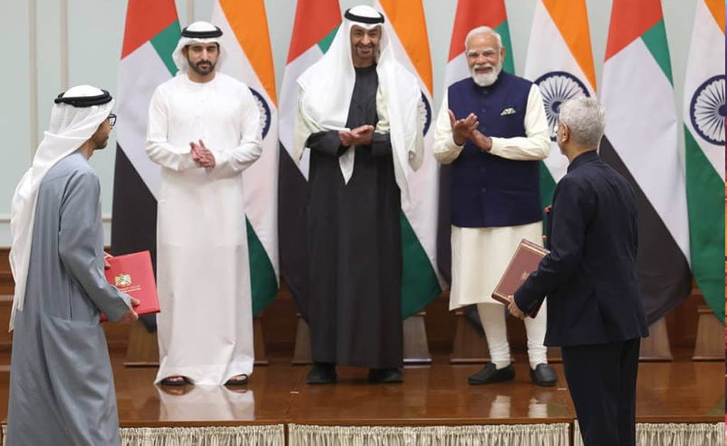 ପ୍ରଧାନମନ୍ତ୍ରୀ ନରେନ୍ଦ୍ର ମୋଦୀ ଏବଂ ରାଷ୍ଟ୍ରପତି ଶେଖ ମହମ୍ମଦ ବିନ୍ ଜାୟେଦ ଅଲ୍ ନାହ୍ୟାନ ଦୁଇ ଦେଶ ମଧ୍ୟରେ ଦ୍ୱିପାକ୍ଷିକ ସହଯୋଗର ସମ୍ପୂର୍ଣ୍ଣ ପରିସରକୁ ସମୀକ୍ଷା କରିଥିଲେ। ଗତ ଏକ ଦଶନ୍ଧି ଧରି ଭାରତ-ୟୁଏଇ ବ୍ୟାପକ ରଣନୀତିକ ସହଭାଗୀତା ଦୃଢ଼ ହେବାରେ ଲାଗିଛି ବୋଲି ସେମାନେ ସେମାନେ ସହମତ ହୋଇଥିଲେ।
