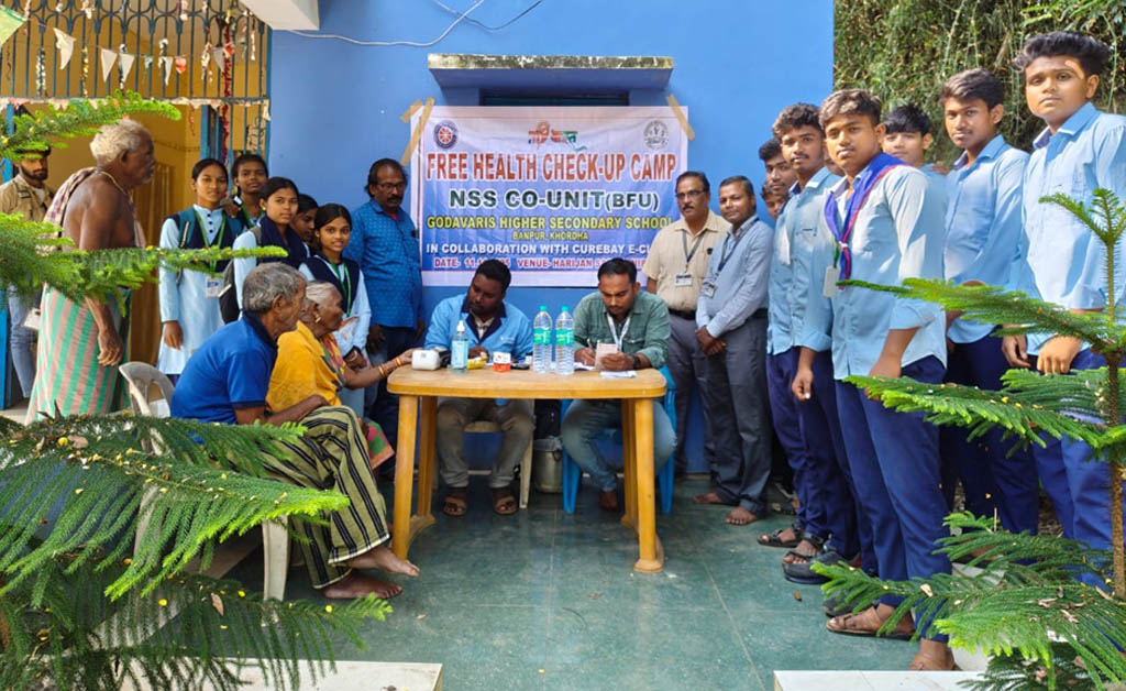"ମାଗଣା ସ୍ୱାସ୍ଥ୍ୟ ଶିବିର" CUREBAY E-CLINIC ଗୋଦାବରୀଶ ଉଚ୍ଚ ମାଧ୍ୟମିକ ବିଦ୍ୟାଳୟ ଜାତୀୟ ସେବା ଯୋଜନା ପୋଷ୍ୟଗ୍ରାମ ବାଣପୁର