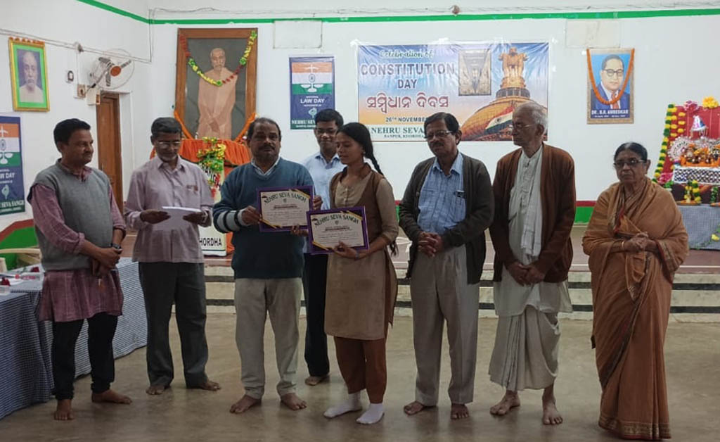 ସେବା ସଂଘର ଅନ୍ତେବାସୀ ଦୃଷ୍ଟିହୀନ, ମୁକ,ବଧିର ଛାତ୍ର ଛାତ୍ରୀଙ୍କ ମଧ୍ୟରେ ସମ୍ବିଧାନ ସଂପର୍କରେ ଏକ ଚିତ୍ରାଙ୍କନ ଓ ଭାଷଣ ପ୍ରତିଯୋଗୀତା ର ଆୟୋଜନ କରାଯାଇ କୃତି ପ୍ରତିଯୋଗୀଙ୍କୁ ମାନପତ୍ର ପ୍ରଦାନ ପୂର୍ବକ ପୁରସ୍କୃତ କରାଯାଇଥିଲା। ଅନୁଷ୍ଠାନର କର୍ମକର୍ତ୍ତା ବିରେନ୍ଦ୍ର କୁମାର ତ୍ରିପାଠୀ ସ୍ୱାଗତ ଭାଷଣ ଦେଇଥିଲାବେଳେ ପ୍ରଶିକ୍ଷକ ପ୍ରଦୀପ କୁମାର ଦାସ ଧନ୍ୟବାଦ ଅର୍ପଣ କରିଥିଲେ।