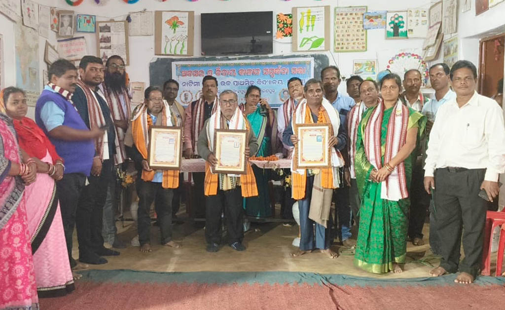 ଶିକ୍ଷକତାରୁ ଅବସର ଗ୍ରହଣ କରିଥିବା ମନୋଜ କୁମାର ବିଶ୍ୱାଳ, ପ୍ରଭାକର ଭୋଇ, ପ୍ରଫୁଲ ପ୍ରଧାନ ଓ ପଦୋନ୍ନତି ପାଇ ଅନ୍ୟତ୍ର ପ୍ରଧାନ ଶିକ୍ଷକ ଭାବେ କାର୍ଯ୍ୟରତ ମନୋରଞ୍ଜନ ମହାରଣାଙ୍କୁ ମାନପତ୍ର, ପୁଷ୍ପଗୁଛ ଓ ଉପଢ଼ୌକନ ପ୍ରଦାନ କରି ଗରିମାମୟ ବିଦାୟ ସମ୍ବର୍ଦ୍ଧନା ଦିଆଯାଇଥିଲା।